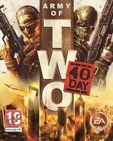 Army of Two: The 40th Day is a third-person shooter video game developed by EA Montreal and published by Electronic Arts for PlayStation 3 and Xbox 360. The game was also released for PlayStation Portable, which was developed by Buzz Monkey.[1] It is the sequel to Army of Two. Army of Two: The 40th Day was released in 2010 worldwide.