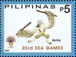 ![]() Logo of arnis at the 2005 Southeast Asian Games on a 2005 stamp of the Philippines | |