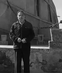 ![]() Mejía Rojas in front of La Barca de la Fe | |