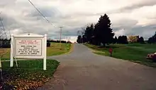 Since the only entry to the course is on the American side of the border, American golfers can use the entire club without reporting to a Port of Entry.[1] Canadian golfers historically used a small local road, Brown Road, to cross the border and access the country club; while Canada had a seasonal border checkpoint on the road, entry to the U.S. had been unsecured since the 1950s.[4] In 2008, however, the U.S. border officials closed the unpatrolled border crossing on Brown Road, citing increased concerns over terrorism and a drug sale on the course in 2006.[5] The closure required Canadian golfers to make a 33-kilometre (21 mi) detour through Fort Fairfield to access the course and was criticized by the Fort Fairfield town manager and the country club's golf pro. U.S. Senator Susan Collins and Canadian MP Mike Allen proposed that U.S. border officials establish a new seasonal border checkpoint on Brown Road.[4] As of 2019, the Four Falls Border Crossing is a seasonally open border checkpoint along Brown Road on the Canadian side.[6][1]