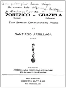 Arrillaga Musical College was a music college in San Francisco. The school was established and directed by pianist Santiago Arrillaga Ansola, a Basque immigrant. After his death it was run by his son Vincent.[1][2] Fernando Michelena (1858–1921), a Venezuelan born tenor and the father of Vera Michelena and Beatriz Michelena, also served as its president. It was located at 2315 Jackson Street.[3]