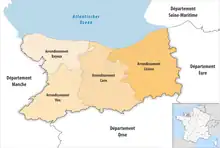 The borders of the arrondissements of Calvados were modified in January 2017:[5]
