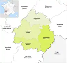 The borders of the arrondissements of Dordogne were modified in January 2017:[7]