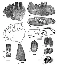 {{cite journal}}: CS1 maint: multiple names: authors list (link) - ↑ Court, Nicholas (1992-02-01). "A unique form of dental bilophodonty and a functional interpretation of peculiarities in the masticatory system of Arsinoitherium (mammalia, Embrithopoda)". Historical Biology. 6 (2): 91–111. Bibcode:1992HBio....6...91C. doi:10.1080/10292389209380421. ISSN 0891-2963.