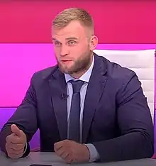 Artem Hennadiyovych Dmytruk was born on 28 June 1993 in the city of Koziatyn, in central Ukraine. He is a graduate of the National University Odesa Law Academy, specialising in jurisprudence. Prior to his election, he worked as an entrepreneur, porter, and bouncer. He was owner of the Barbell Barbell Gym and "baza" fitness clubs. He is co-founder of the "I'm an Odesan, and I don't care" non-governmental organisation, as well as a member of the "Ilya Muromets" non-governmental organisation.[1]