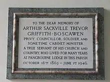 Sir Arthur Sackville Trevor Griffith-Boscawen PC (18 October 1865 – 1 June 1946) was a British politician in the Conservative Party whose career was cut short by losing a string of Parliamentary elections.