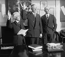 Hyde sworn into office as secretary of agriculture, next to his predecessor William M. Jardine (right).