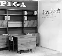 The business originally manufactured simple bedroom furniture, like small beds, but during cooperation with Danish designer Ib Juul Christiansen in 1952 the Pega furniture system was developed.[1] This system would become the breakthrough of the company both nationally and internationally, and was based around the concept of being able to combine the various different furniture types in many different ways. Over 50% of production were for exports, mainly to the US and Germany.[2] Exports to the US were handled by the companies Scandialine and ScandiCraft.