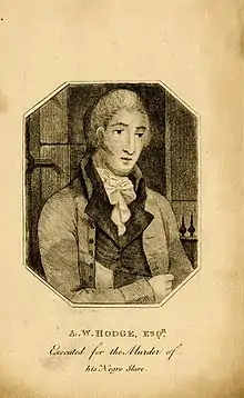 Arthur William Hodge (1763 – 8 May 1811) was a plantation farmer, serial killer, member of the Executive Council and Legislative Assembly, and slave owner in the British Virgin Islands, who was hanged on 8 May 1811, for the murder of one of his slaves.
