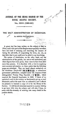 • The salt administration of Ssŭchʻuan; published in English in 1893.
