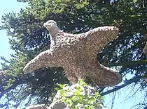 As with so many others of his works, Gaudí filled the gardens with Christian symbols. For these gardens, he took the symbols from the four gospels. Tetramorph images are found throughout the park: the angel of Saint Matthew at la Cascada; the eagle of Saint John at the Coix arch bridge, which crosses the Llobregat river; the lion of Saint Mark at la Pèrgola; and the bull of Saint Luke at the Bull Fountain. These four images are situated in the form of a cross.[3]