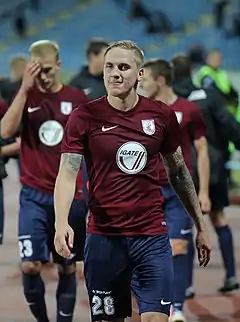In August 2012 Lazdiņš went on trial with the Polish Ekstraklasa club Piast Gliwice and signed a contract with them in September 2012.[6] He scored his first goal for the club on 30 March 2013 in a 1–1 league match draw against Jagiellonia Białystok.[7] The 2012-13 season, which was the debut season for Piast since the return to the Ekstraklasa, saw the club finish the league in the 4th position of the table, qualifying for the UEFA Europa League for the first time in the club's history.[8] Lazdiņš participated in the second leg of the second qualifying round, when Piast played a 2–2 draw against the Azerbaijani club Qarabağ.[9] In his second season with Piast Lazdiņš gradually lost his place in the starting line-up, playing just seven league and two cup matches for the club.