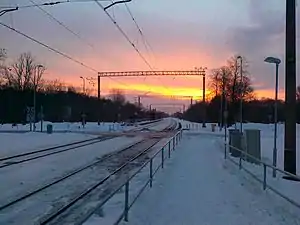 Aruküla railway station (Estonian: Aruküla raudteepeatus) is a railway station serving the small borough of Aruküla in Harju County in northern Estonia.[1] It is the seventh station on Elron's eastern route between Tallinn and Aegviidu.[2] It is located about 21 km south-east of Balti jaam. The station is served by commuter trains heading to Aegviidu and consists of two 150 metre platforms.
