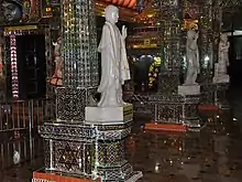 Light from crystal chandeliers is reflected on doors, pillars, walls and ceilings in a bright blaze that is quite blinding initially. At least 90 per cent of the temple is embellished by a mosaic of 300,000 pieces of red, blue, yellow, green, purple and white glass.
