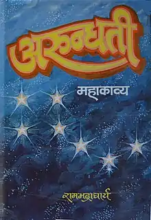 Arundhatī (Hindi: अरुन्धती) (1994) is a Hindi epic poem (Mahakavya) composed by Jagadguru Rambhadracharya (1950–) in the year 1994. It consists of 1279 verses in 15 cantos (sargas). The poem presents the narrative of the couple Arundhatī and Vasiṣṭha which is found in various Hindu scriptures. As per the poet, the narration of the epic is directly related to the psychological evolution of humans.[1] A copy of the epic was published in 1994 by the Shri Raghav Sahitya Prakashan Nidhi, Haridwar, Uttar Pradesh. The book was released by the then President of India, Shankar Dayal Sharma on July 7, 1994.[2]
