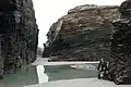 Praia das Catedrais (Spanish: playa de las Catedrales, English: Beach of the Cathedrals) is on the northwest coast of Spain. It is the name given by the tourism industry to Praia de Augas Santas (translated from Galician: 'Beach of the Holy Waters'). The beach is located in the Ribadeo municipality, in the province of Lugo (Galicia), on the Cantabric coast, and it lies about ten kilometres to the west of the town of Ribadeo. Its name is derived from its cliff formations.