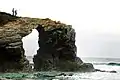 The characteristic features of the beach are its natural arches and caves, which can be seen only at low tide. During high tide, the beach appears small, but still suitable for swimming. During low tide the size of its cliffs and sea caves is more apparent, ranging from small cracks on the rock to big caves whose roofs have collapsed due to the erosion of the waves.