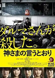 As the Gods Will (神さまの言うとおり, Kami-sama no Iu Tōri) is a 2014 Japanese supernatural horror film directed by Takashi Miike. It is based on the first arc of the eponymous manga series by Muneyuki Kaneshiro and Akeji Fujimura. The film was released on home media in the United States by Funimation.[3]