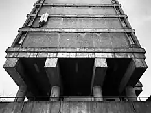 The building was designed by architect Eino Tuompo in the Brutalist style, and completed in 1976. It has received acclaim for its bold architecture.[1] In 2020 it was featured by the German Architecture Museum in the exhibition SOS Brutalism.[2] It is also listed by the city of Helsinki on the official Helsinki tourism website myhelsinki.fi as an architectural attraction of historical significance.[3] The building is also referenced on the tourism page for the district of Eastern Pasila.[4] Emporis includes the building[5] in its global database of "buildings of high public and economic value."[6]