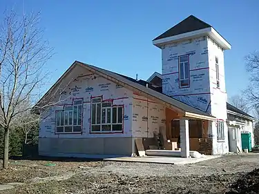 The Ashburn School House (after 1967 a community centre) was built circa 1861 by William Pearson (1833–1897), a Scottish builder who constructed many fine stone houses in Whitby and Pickering; each wall was constructed in a different style to showcase Pearson's masonry skill. The school was designated a "cultural heritage property" in 1984.[13] In 1866, the school had about 80 pupils.[14] Today, the designated primary schools for Ashburn are in the neighbouring community of Brooklin, and the secondary schools in urban Whitby.[15]