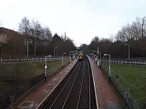 Monday to Saturdays there is a half-hourly service eastbound to Glasgow Queen Street and westbound to Anniesland, where connections are available for North Clyde Line services.[2]