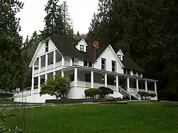 The Ashford Mansion, also known as the Ashford House is a turn of the 20th century residence located in Ashford, Washington. The house was built in 1903, in the Colonial Revival style by Cora Ashford, for whom the town of Ashford is also named. The building was constructed of solid grain Douglas Fir, with a porch enclosing three sides of the main floor and a covered veranda on each end of the second floor. The mansion is located in south Pierce County, seven miles from the Nisqually River Entrance to Mount Rainier National Park. From the time of its construction until 1967 the mansion stayed in the Ashford family. After its sale the mansion served at different times as a private residence, an English-style bed and breakfast, and is currently rent-able for various functions.[1]