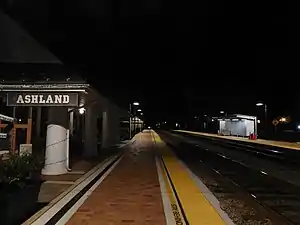 Ashland is an Amtrak intercity train station in Ashland, Virginia, serving Northeast Regional trains bound for Richmond, Newport News and Norfolk as well as many points north. The station is also designated as Ashland's visitor center. The tracks are lined with a cobblestone median in the center of town, making it a popular train-watching site for railfans.