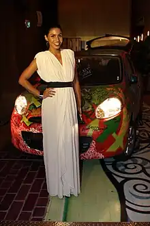 Ashleigh Francis with a colored Nissan Micra, 2011
