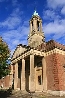 The Foundling Hospital was located in Lamb's Conduit Fields in Bloomsbury, an undeveloped, pastoral area of London. As the city expanded and became more polluted in the 19th century, the Hospital governors began to consider relocation to a healthier, more rural location. With the advent of the railways, travel outside the city was much easier. In 1926, the Foundling Hospital relocated temporarily to Redhill, Surrey, while a new, purpose-built school was constructed in Berkhamsted on land obtained from the Ashlyns Estate. The new building, designed by John Mortimer Sheppard in a neo-Georgian style and modelled on the original Foundling Hospital, opened in 1935.[2][3]