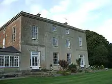 In the 19th century, significant modifications to the property were undertaken. The owners added a service wing to the western side of the house, running from the original Georgian structure towards the walled garden, providing kitchens for the house (two in number), two dairies, pantries and store rooms, and servants' accommodation.[19] This wing was damaged by fire in the 1950s, and demolished in the early 1970s. The westernmost portion of the wing remains, and is now in use as garages.