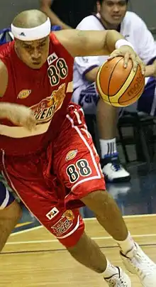 Along with Kelly Williams, Taulava was granted the permission to play for Smart Gilas for the 2010 Asian Games in November.[25] The team eventually reached 6th place in the tournament. In January 2011, Taulava declared his availability for Smart Gilas to represent the country at the 2011 FIBA Asia Championship, held in Wuhan, China. The 2003 MVP also said: "I’ll make all the necessary sacrifice for Team Pilipinas and our country. Let’s all unite for flag and country and make 2011 a year for Philippine basketball."[26] In August 2011, Taulava joined the Smart Gilas Team for the 2011 William Jones Cup; in the preliminary round of the tournament, the Philippine team compiled a promising 5–2 record, before being eliminated in the semifinals by Iran. On August 9, 2011, during a game against Malaysia, Taulava got involved in an altercation with Yoong Jing Kwaan. The episode happened in the third quarter of the match; with less than 20 seconds remaining in the period, Taulava suddenly went down on the floor in pain after Yoong Jing Kwaan grabbed and squeezed his private parts. The Fil-Tongan then stood up, chased the Malaysian player and hit him twice in the head. The two were later tossed out with 7.4 seconds left in the period.[27] Smart Gilas eventually won, 86–68. Taulava would later apologize for his actions.[27]