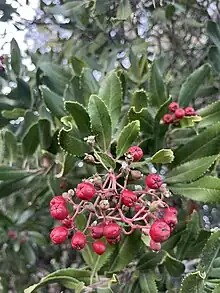 Asphondylia photiniae, also known as the toyon fruit gall midge or toyon berry gall midge, is a species of midge that induces galls on the developing berries of the toyon bush in North America.[1][2] Galled berries stay green (when other fruit has ripened to red or gold, etc.) and look somewhat warped.[2] Each galled berry contains a single larva, which emerges in spring.[2] This midge is known from the Californias, where native Heteromeles arbutifolia grows in relative abundance.[1]