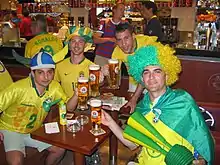 Brazilian supporters in Berlin drinking beer
