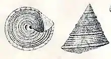 Drawing with two views of a shell of Astele rubiginosa