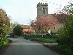 The parish church of St Mary the Virgin in the village has what could be the county's oldest church bell, dating back to 1270. In 2012 this bell, now named Mary (after the church's saint), was restored and rehung in the church tower, along with a restored 18th-century bell which is now named Elizabeth (after the late Queen, because it was hung in her Jubilee year).[2] The tower's clock, made by the firm of J.B. Joyce & Co. of Whitchurch, Shropshire, was erected by village public subscription to commemorate peace after the First World War.[3]