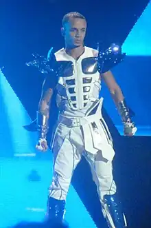 Aston Iain Merrygold (born 13 February 1988)[2] is a British singer, songwriter, actor, dancer and television presenter. He is known for being a member of the British boy band JLS, who were the runners-up to Alexandra Burke in the fifth series of The X Factor. After five years, JLS split on 22 December 2013.[3] In 2013, Merrygold became a judge on the British dance talent show Got to Dance.[4]