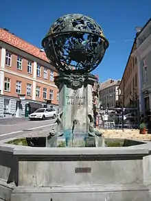 Hugo Gehlin designed the archangel models for the fountain’s globe and Göte Bergsten carefully chased the star reliefs designed by Astrid Aagesen. The reliefs awoke great attention since they portrayed several local celebrities, among them Astrid Aagesen herself, as could clearly be seen when they were finally completed. The design was declared to be a coup and was written about all over the country, although not always in positive terms. Even the international press sat up and took notice.[3]