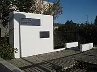 A monument commemorating Atatürk by M. Turkmen was erected on a street next to the complex in 1978. It consists of a copper plate with an inscription, together with the decorative concrete elevation in front. The inscription includes the "Peace at Home, Peace in the World" quote of Atatürk in both Dutch and Turkish,[20] as well as the text "Here was the Ataturk residential complex, Turks lived there. Unity and solidarity brought happiness, and this monument was erected to remember them."[21]