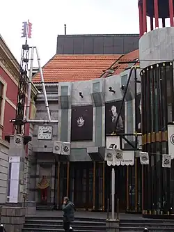 Atelje 212's first theater managers were Radoš Novaković and Bojan Stupica. Initially, Mira Trailović performed the assistant manager duties before assuming the manager role herself.[1] After a few years as tenant in the Borba building, the theater moved to its new home—a building designed by Bojan Stupica on Lole Ribara Street. Over the years, the building went through several major renovations, including the addition of a retractable roof that gets opened in the summer months.