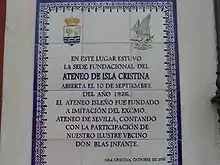 The Ateneo de Sevilla inspired the creation of the Isla Cristina Ateneo, a similar organization based in Andalucia. It opened on September 10, 1926, as a result of the collaboration of Blas Infante.