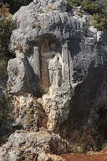 The Athena relief of Sömek is a Greco-Roman rock relief, located some two kilometres north of the village of Sömek in Silifke district of Mersin province in Turkey, near the valley of the Limonlu river, the ancient Lamos. In antiquity, the river formed the border between "Rugged Cilicia" (Kilikia Tracheia) in the west and "Flat Cilicia" (Kilikia Pedias) in the east.