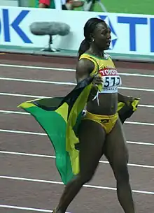 Shelly-Ann Fraser-Pryce, Olympic 100 m champion (2008, 2012), five-time world 100 m champion (2009, 2013, 2015, 2019, 2022) and 2013 world 200 m champion.