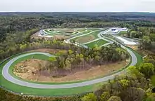 AMP's road circuit consists of a two mile long track that was designed by Formula One track architect Hermann Tilke.[5] The track consists of 16 turns and 98 feet of elevation changes throughout the course. To accommodate all driver skill levels, the circuit can be configured in several different ways and can host up to three simultaneous events. Two famous corners have also been incorporated into the track: Spa-Francorchamp's corner of Eau Rouge and the famous Carousel corner from Germany's Nürburgring track.[6]