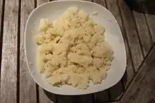 Attiéké (Ebrié: , Bambara: cɛkɛ),[1] also spelled attiéké (Ivory Coast, is a side dish made from cassava that is popular and traditional in Ivory Coast.[2] The dish is prepared from fermented cassava pulp that has been grated or granulated.[3][4] Dried attiéké is also prepared, which is similar in texture to couscous.[4]