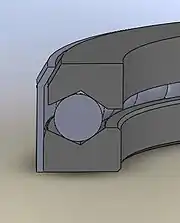 Ball bearing in a v-groove raceway showing four points of contact.