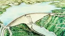![]() A concept drawing of the Auburn Dam, from the U.S. Army Corps of Engineers | |