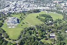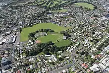 | Albert Park Volcano | 145.0 ± 4.0 | Unclear | 36°50′55″S 174°46′02″E / 36.8486°S 174.7673°E | [38] | ![]() Albert Park Volcano surrounded by city buildings |