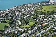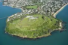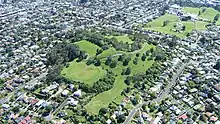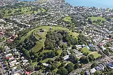 The warmer northern sides of the mountains were also popular among early Pākehā settlers for housing.[25] In the 1880s, Takarunga / Mount Victoria and Maungauika / North Head were developed as military installations due to fears of a Russian invasion.[25] The cones are also protected by a 1915 law, the Reserves and Other Lands Disposal and Public Bodies Empowering Act 1915, which was passed due to early concern that the distinctive landscape was being eroded, especially by quarrying. While often ignored until the late 20th century, it has amongst other things minimised severe changes to Mount Roskill proposed by Transit New Zealand for the Southwestern Motorway.[26]
