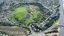 | Styaks Swamp | 19.1 | 16 metres (52 ft) | 36°56′10″S 174°54′01″E / 36.936138°S 174.900155°E | ![]() Site of Styaks Swamp buried beneath buildings and road, 2009 | |