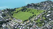 | Whakamuhu / Saint Heliers / Glover Park – see Achilles Point | 161.0 ± 36.0 | 65 metres (213 ft) | 36°50′49″S 174°52′04″E / 36.846911°S 174.867662°E | ![]() Whakamuhu / St Heliers Volcano, 2009 ![]() The Glover Park sports ground at lower right of this photo is situated within the Whakamuhu tuff ring. Over the water in the distance on the right is the scoria cone of Maungauika / North Head and in the left middle is the tuff crater filled in by the sea of Ōrākei Basin. Beyond Ōrākei Basin in the middle distance are several vegetation covered scoria cones. | |